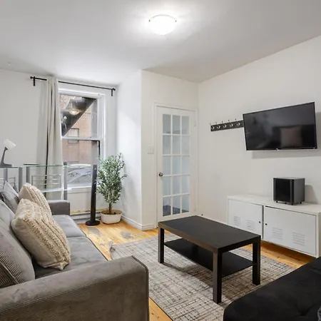 Appartement Spectacular 2B Unit In Montreal dispose d'un coin salon, ainsi que de conforts tels qu'une climatisation. La résidence vous invite dans 2 chambres à coucher. Elles ont aussi 1 salle de bains avec une baignoire. Vous trouverez également un sèche-cheveux, des articles de toilette gratuits et des draps de bain.